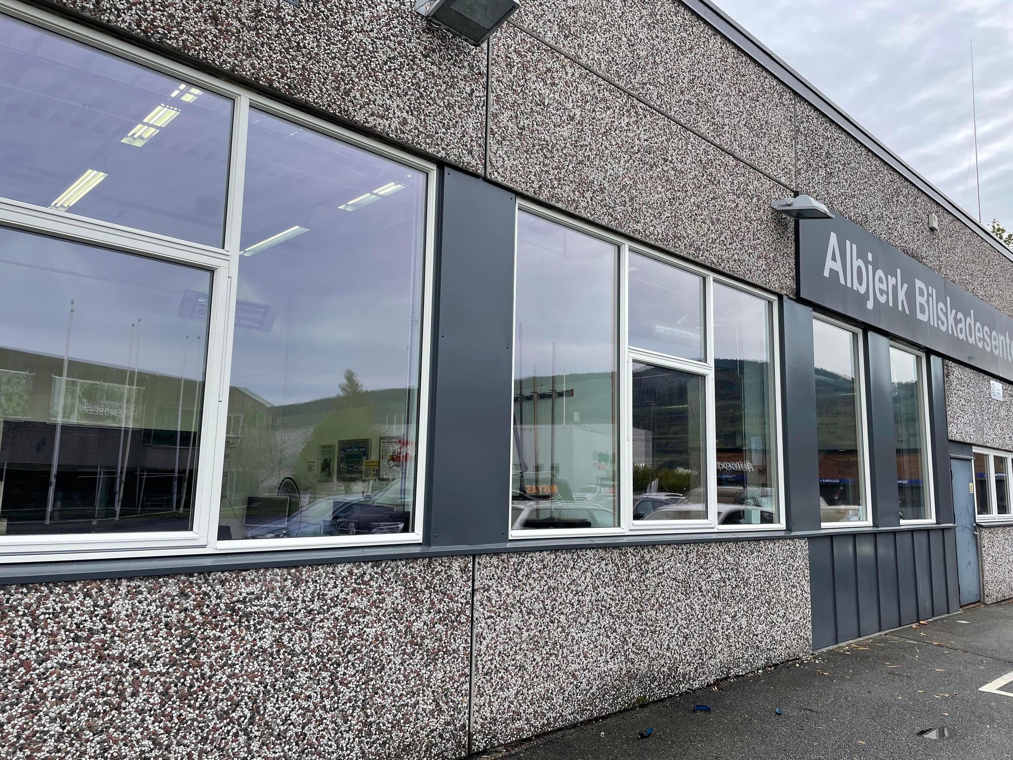 På oppdrag for Albjerk Bil har vi montert nye vinduer på Bilskadesenteret i Drammen. Vinduene veide over 250 kg, så her brukte vi løfteheis for vinduer for å få de på plass. Nytt og spennende for oss med så store vinduer.